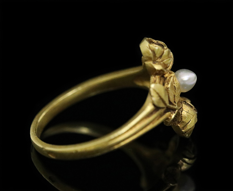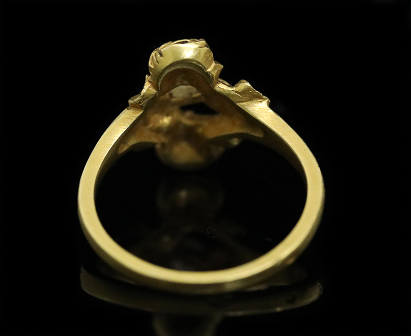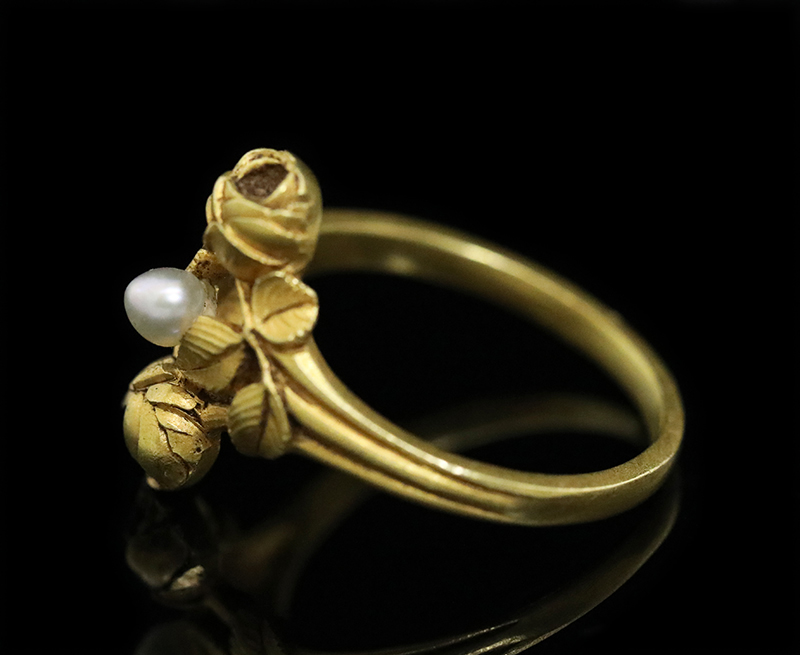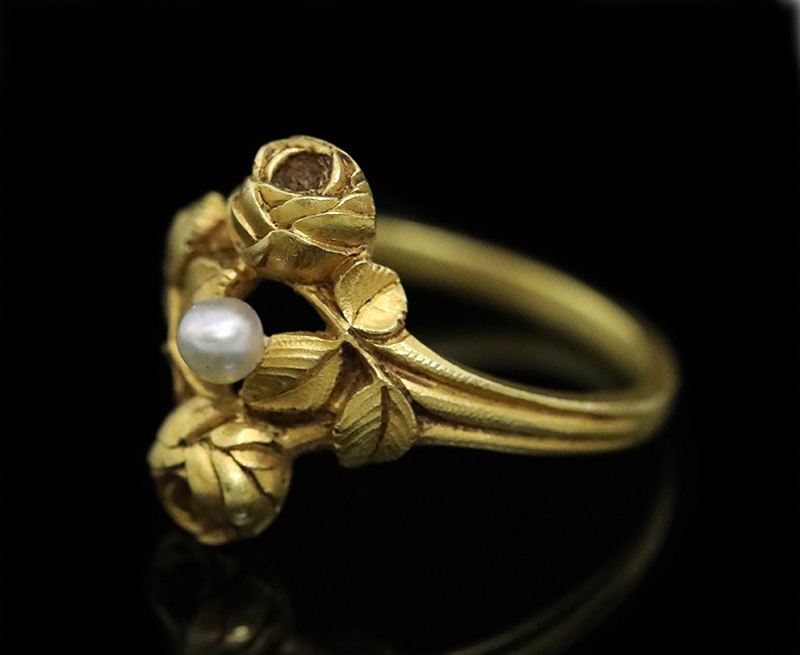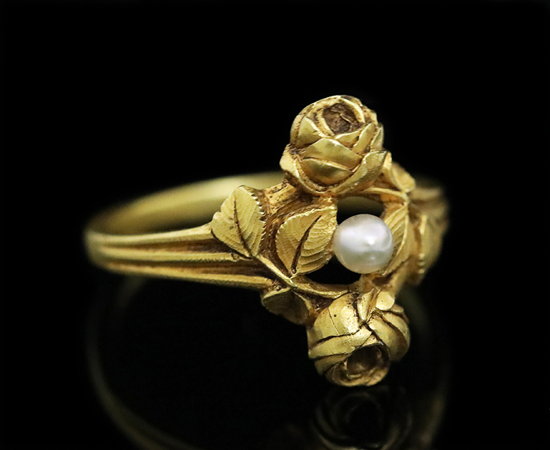 咲きかけの小さな薔薇をモチーフにしたようなアール・ヌーヴォーのゴールドリングです。
