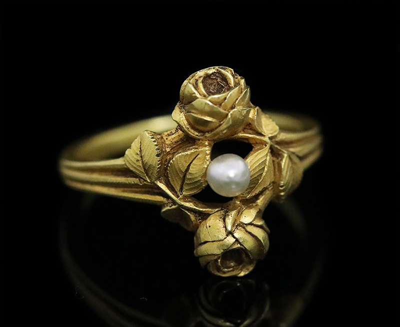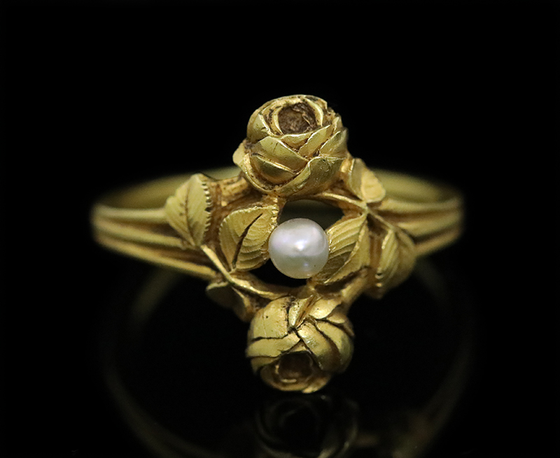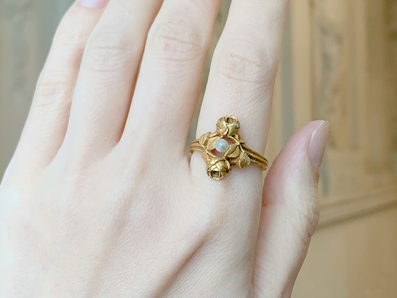 アール・ヌーヴォー 小さな薔薇 天然真珠 リング 指輪