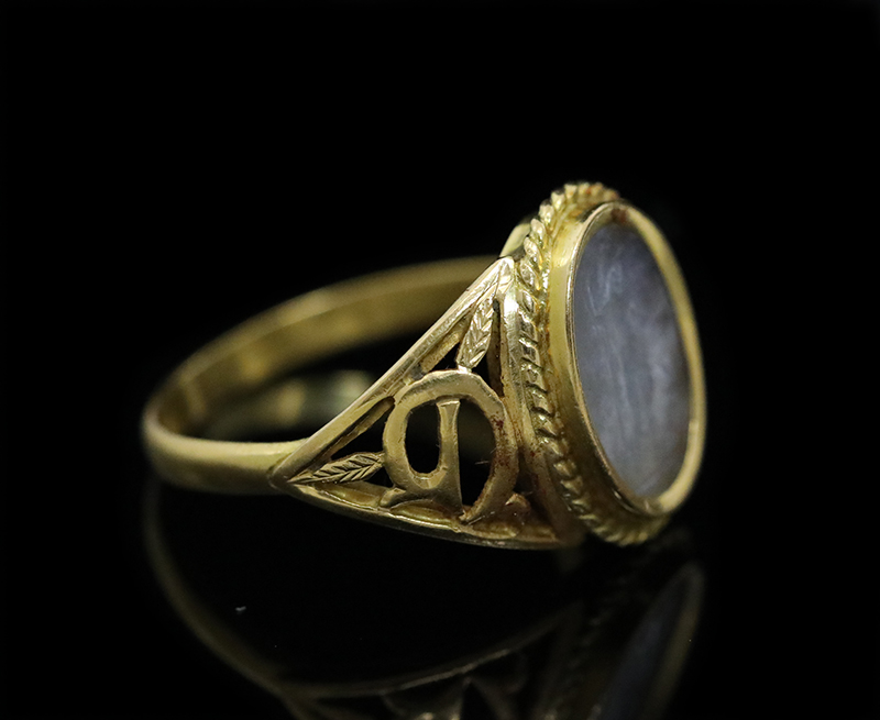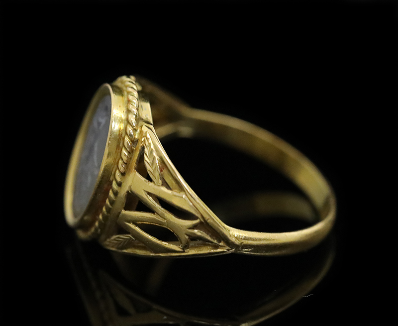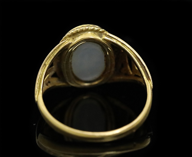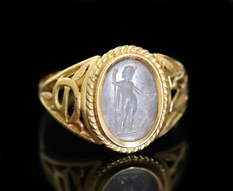 雲状のカルセドニーの古代ローマ2世紀のインタリオがセッティングされています。