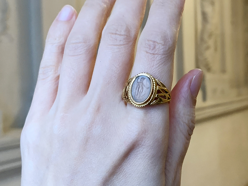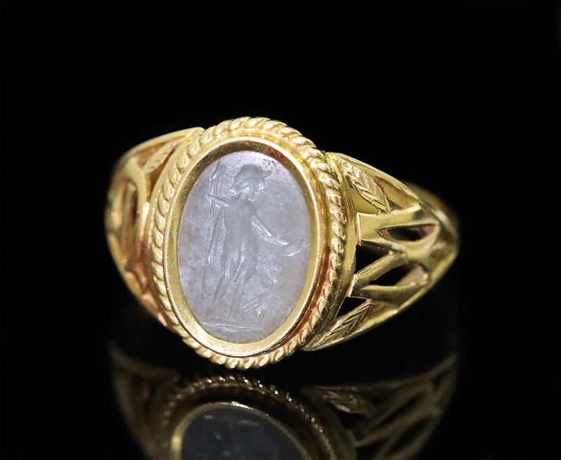 この古代ローマ2世紀のインタリオを包み込むのは、