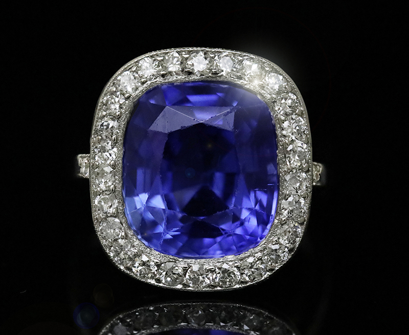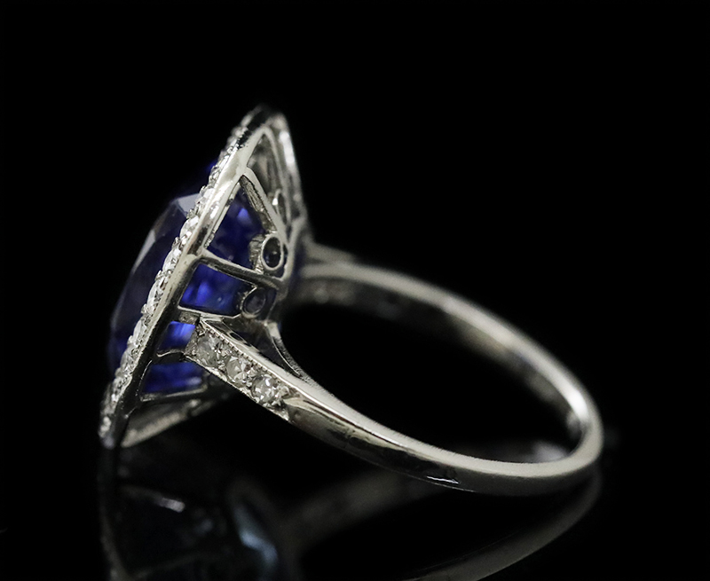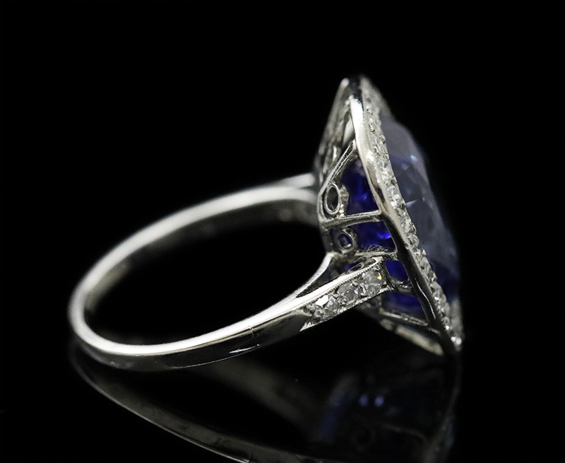 アールデコ 8.351ct 非加熱 セイロンサファイヤ ダイヤモンド リング 指輪