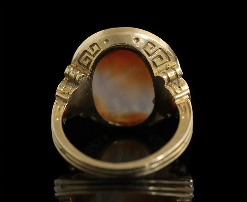 古代ギリシャ風のメアンダー紋様がベゼル裏面を飾ります。