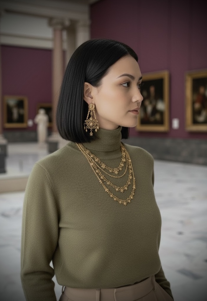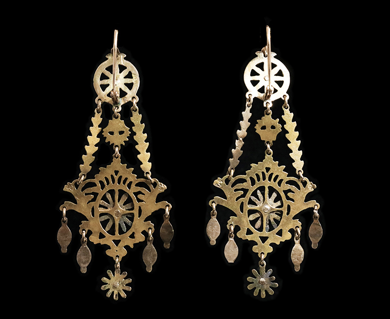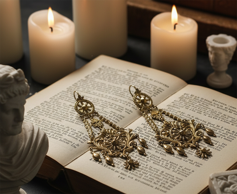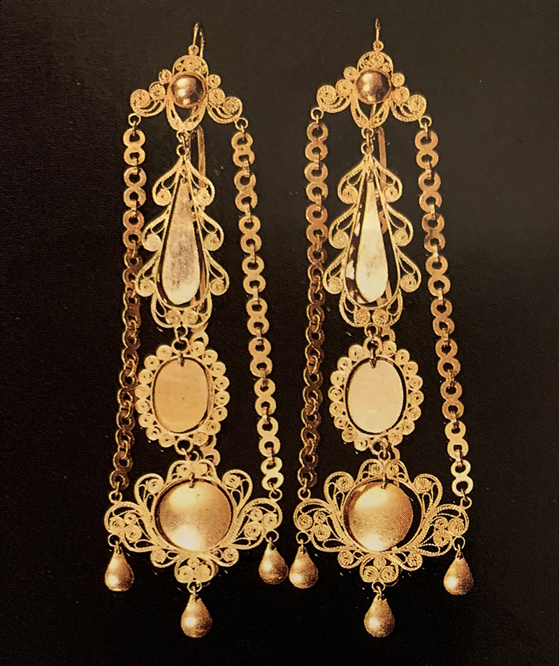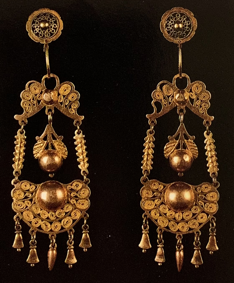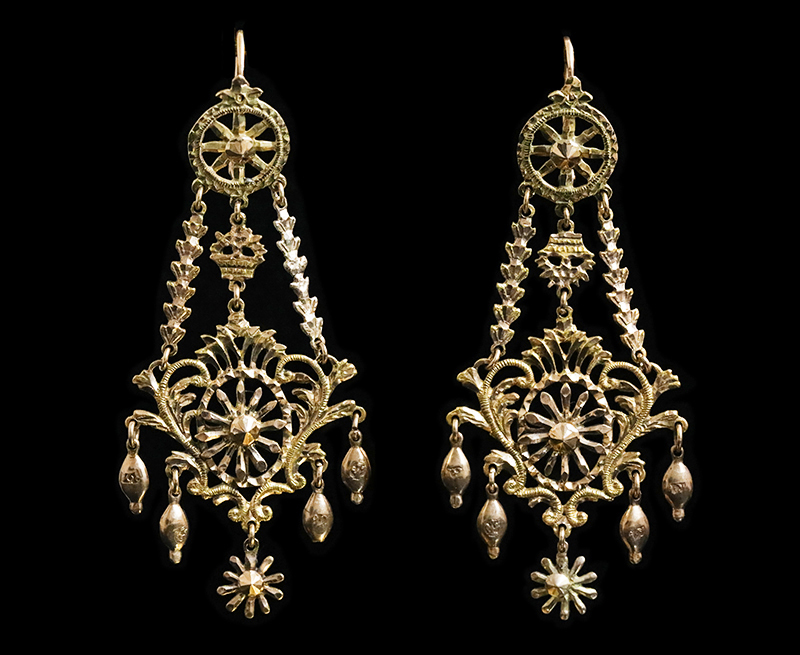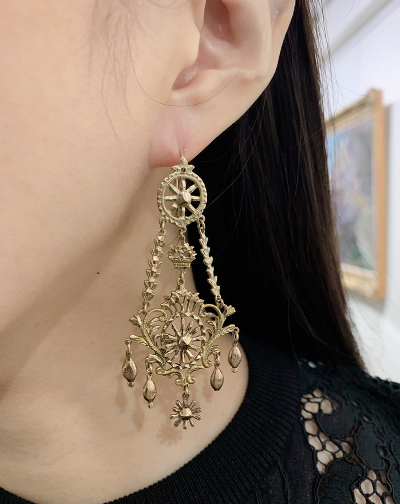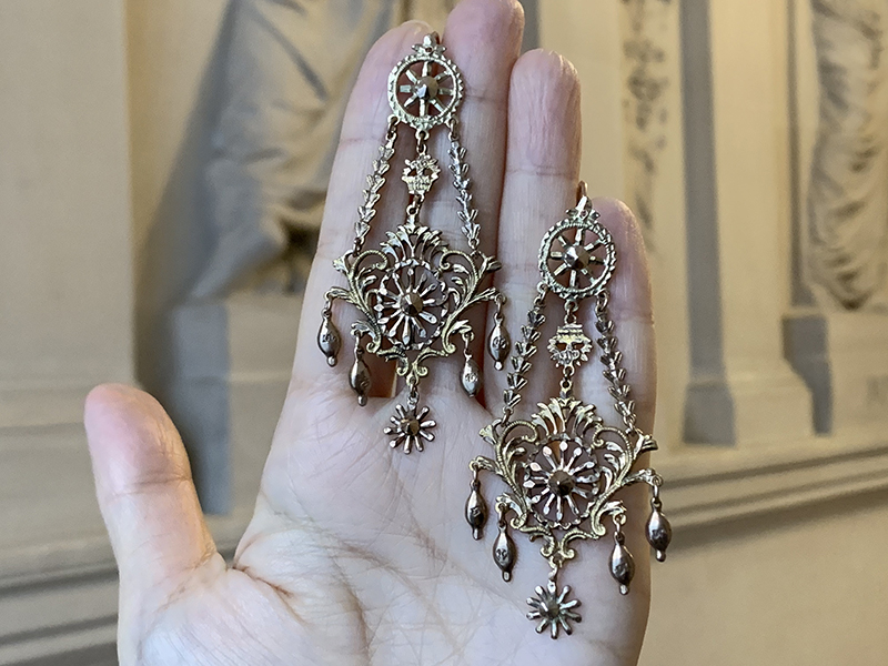 このようなスタイルのピアスはジランドールと呼ばれ当時の西ヨーロッパの上流階級の女性が愛用していました。