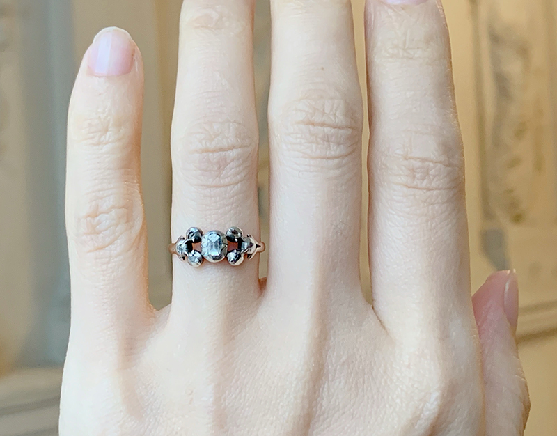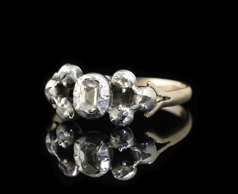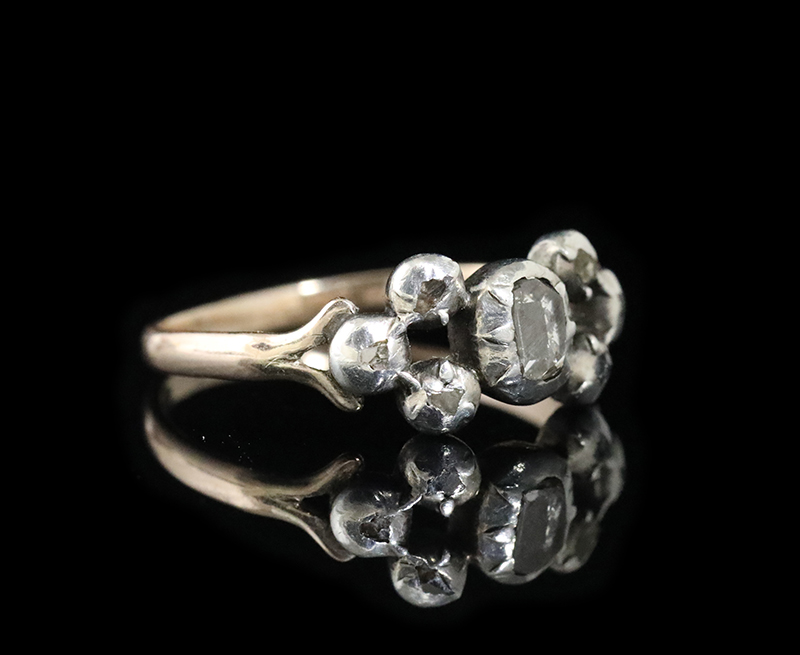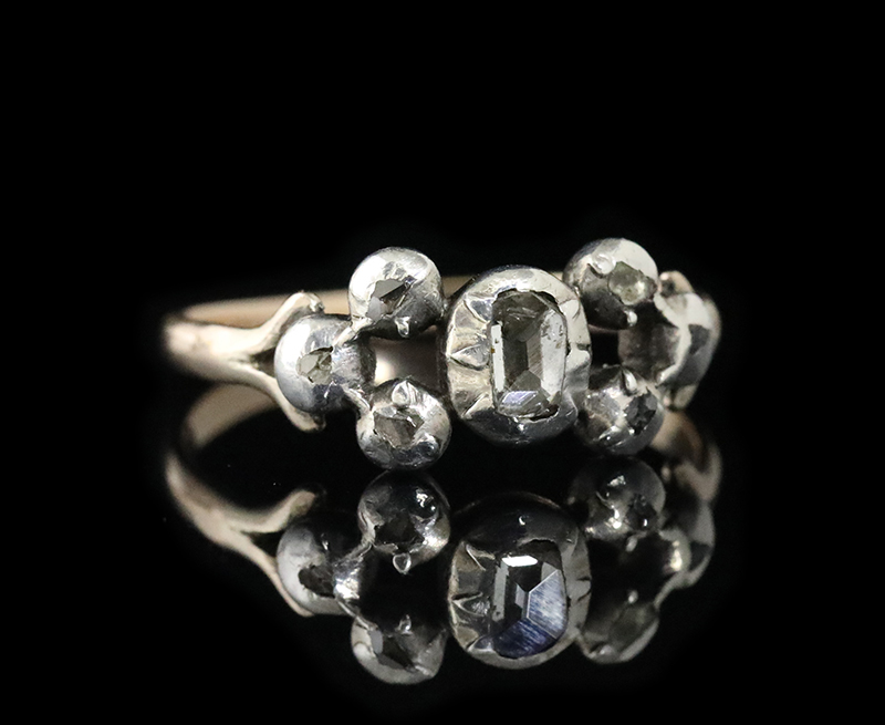 18世紀フランスの古い年代の大変繊細なファセットカット・ダイヤモンドリングです。