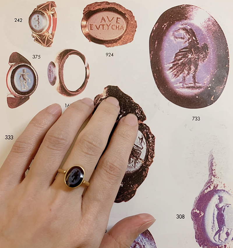 豊かな結びつきや和を願うインタリオですのでお守りにも良いと思います。