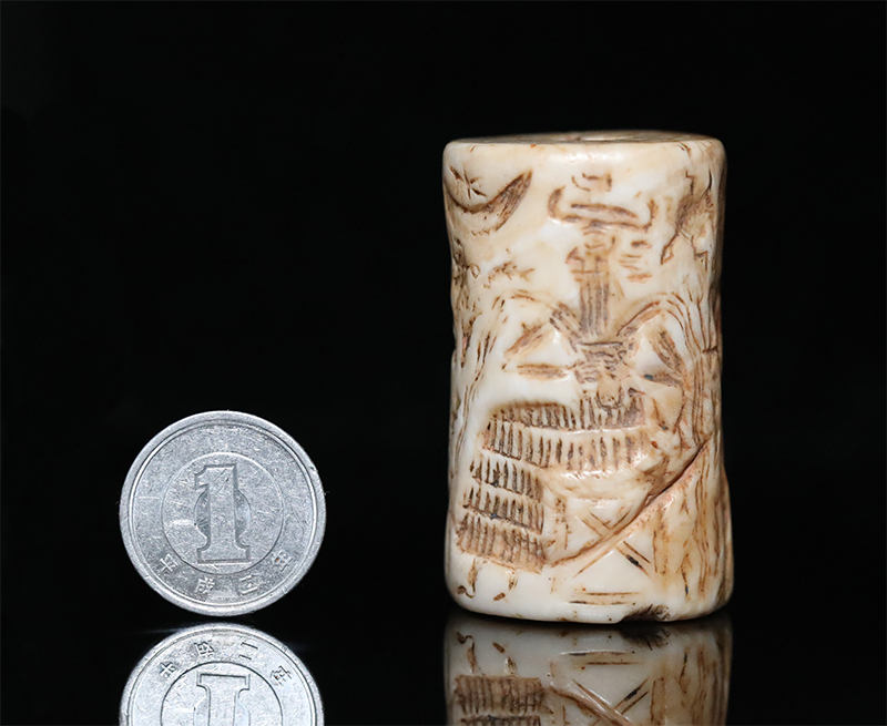 ここまで大型の円筒印章で表現力豊かな作品は滅多に見ることができません。