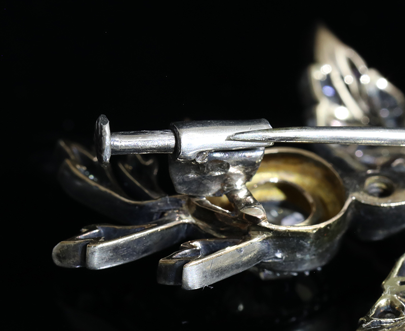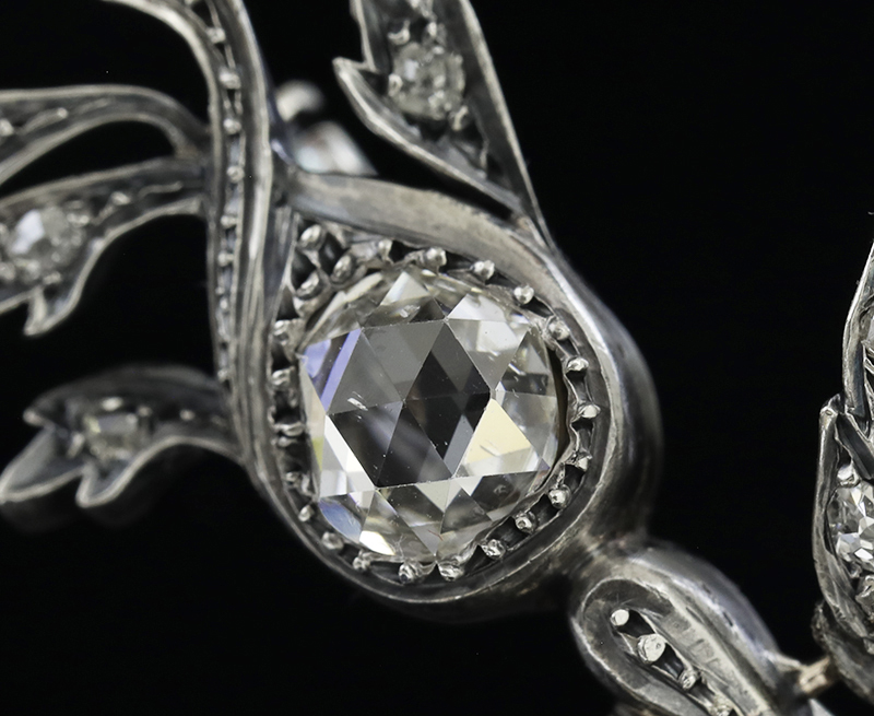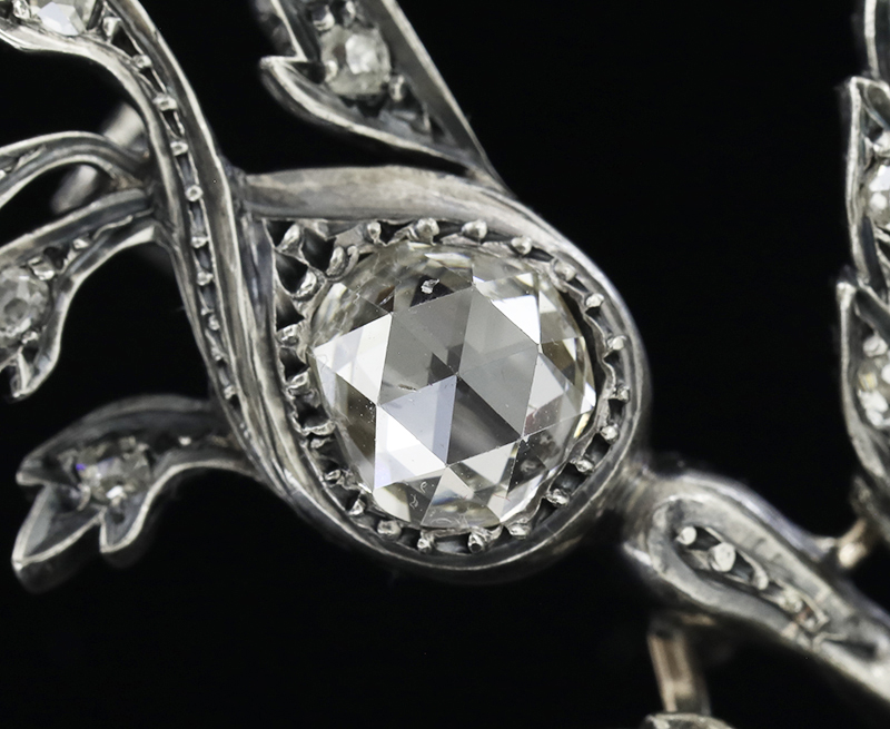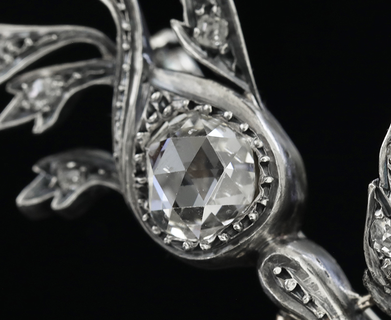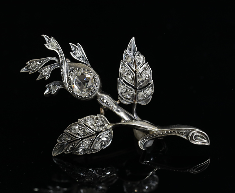 19世紀後半に制作された、ローズカットダイヤモンドの小さな花枝(ブーケ)ブローチです。