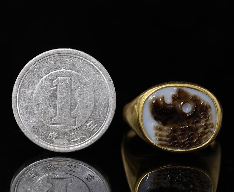 本作はコントラストの強いアゲートの二色を巧みに生かして彫刻されており、