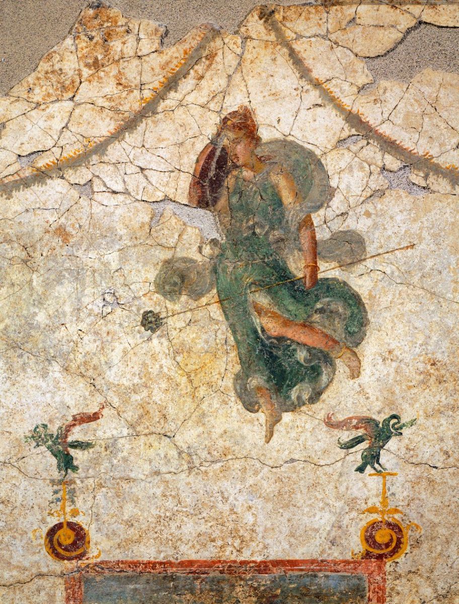 プリアポス神へ供犠(供物)を祭壇に捧げに来たメナデ(バッコス=ディオニュソスに従う巫女)の姿。