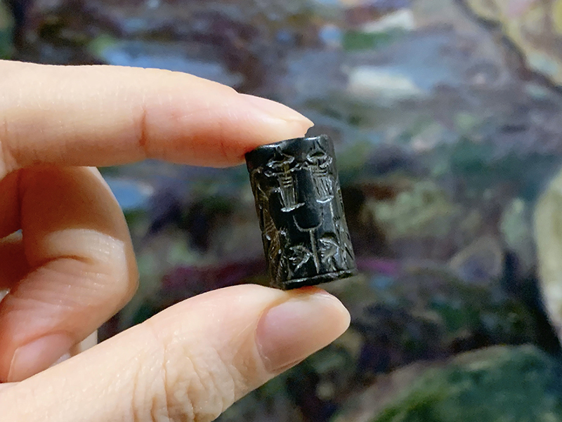約2cmほどの小さな円筒印章ですが小ささを感じさせない存在感と
