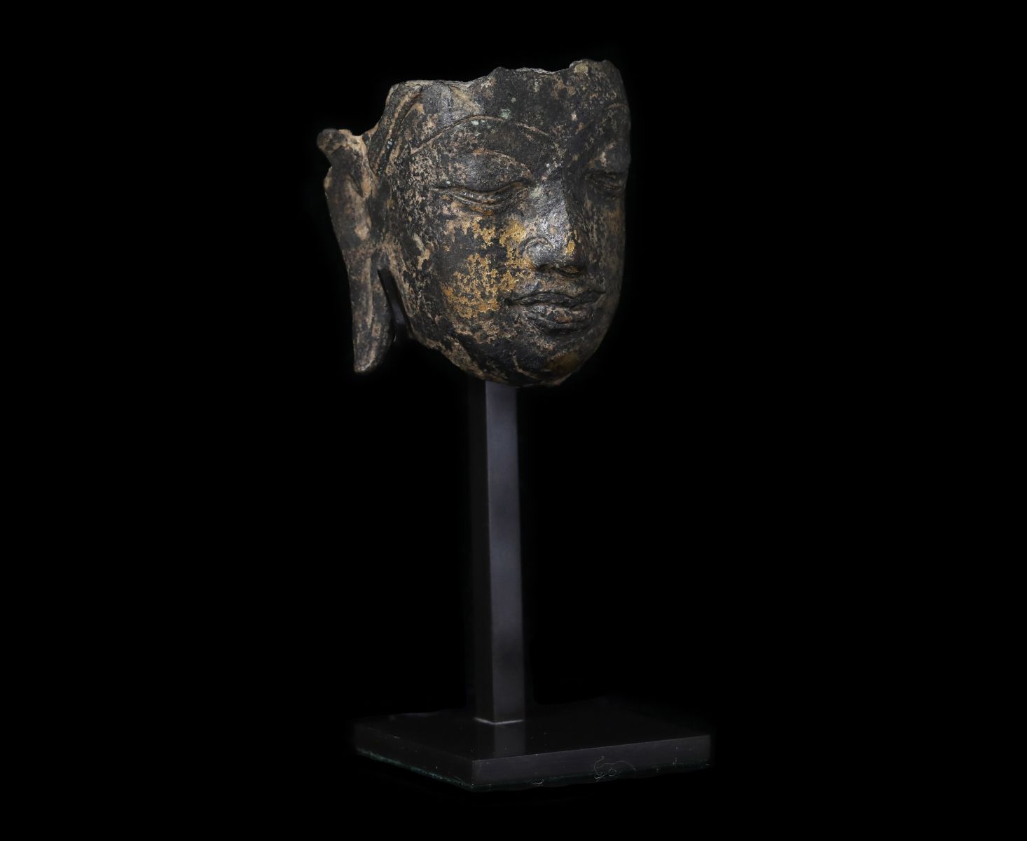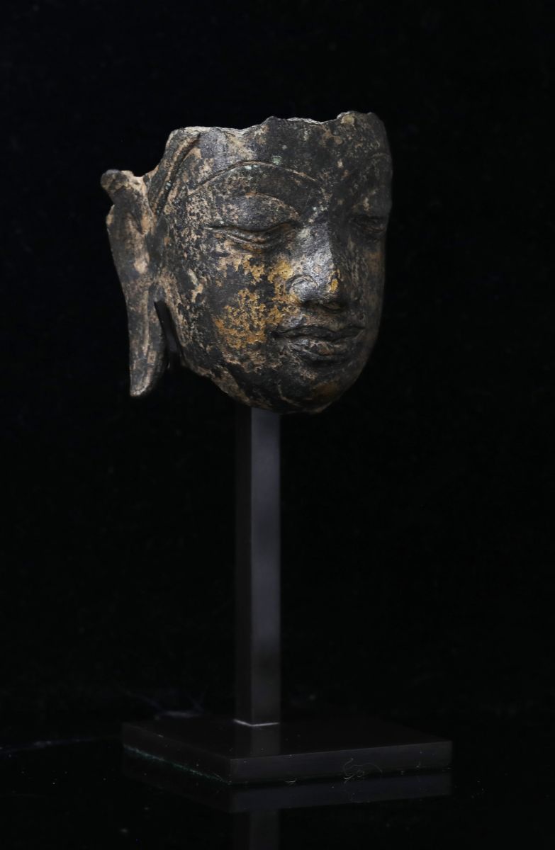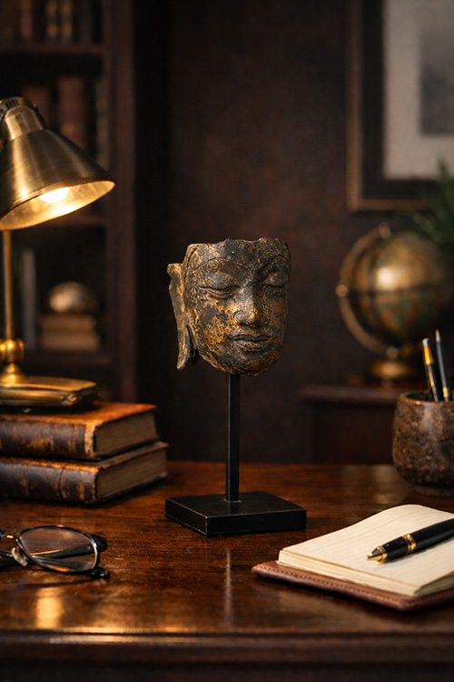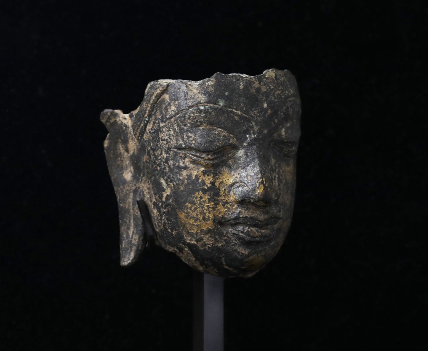 この作品はそのアユタヤ様式を感じさせる仏頭の一部で静かな存在感を放ちます。