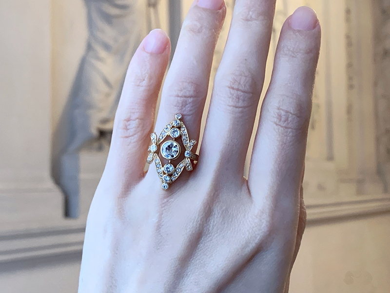 ベルエポックの優美さをゴールドで表現した珍しいリングは写真よりもずっと素敵で可愛いです。