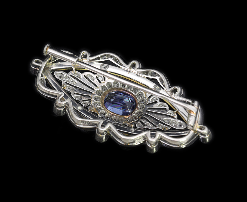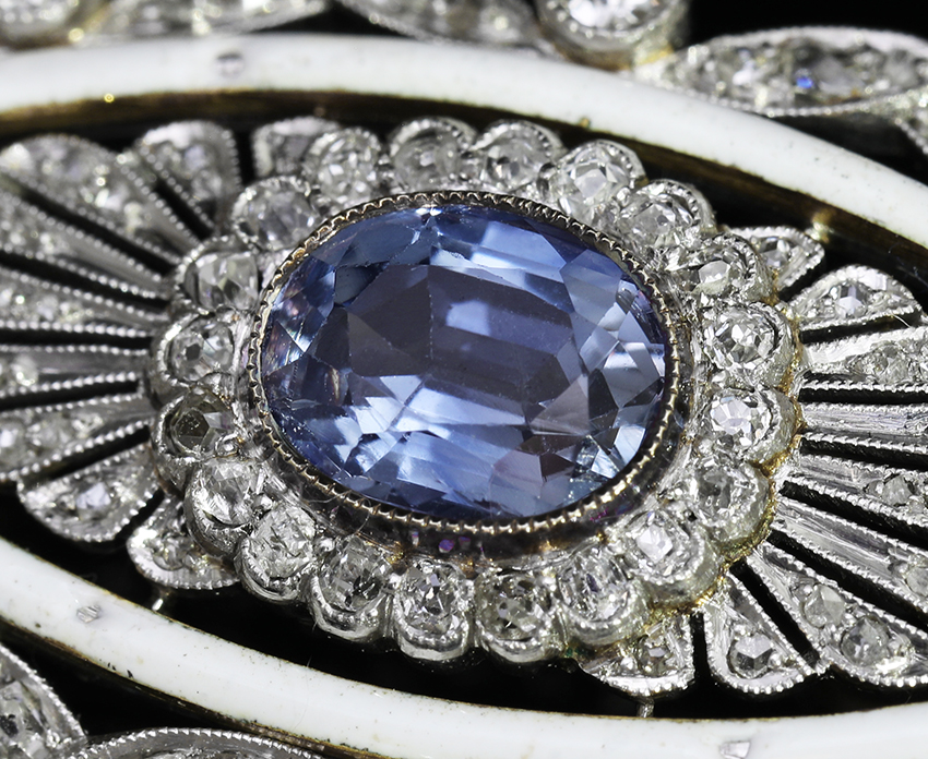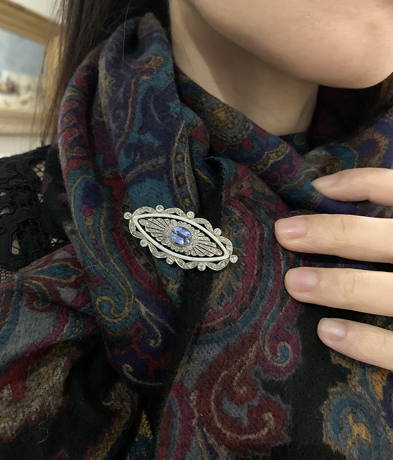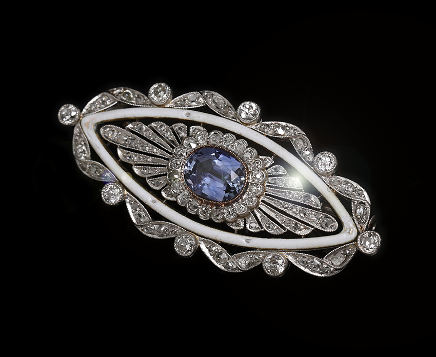 セイロンサファイヤ ダイヤモンド ホワイトエナメル ブローチ