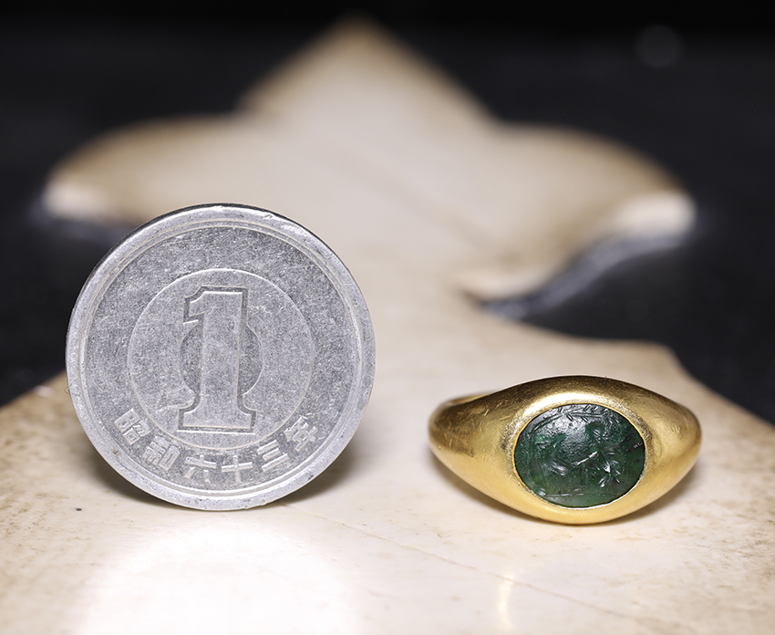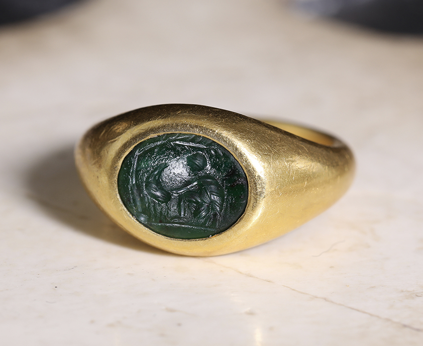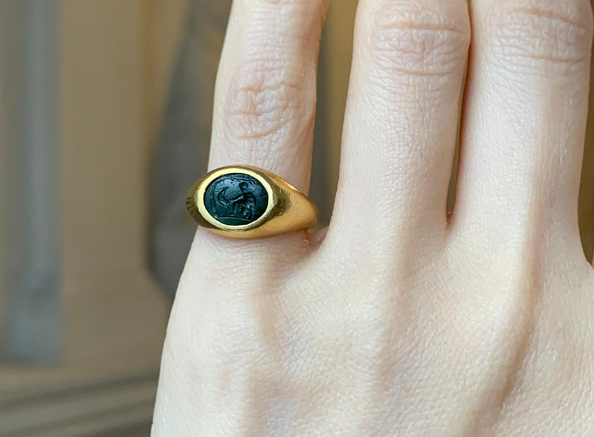古代ローマ1世紀のプラスマ・インタリオを、モダンなゴールドリングに仕立てた一点です。