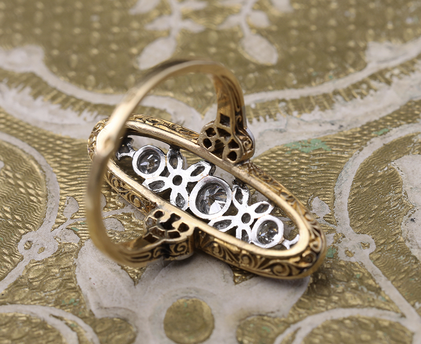 全体的に丁寧で細かな細工で仕立てられたアンティークリングだと思います、