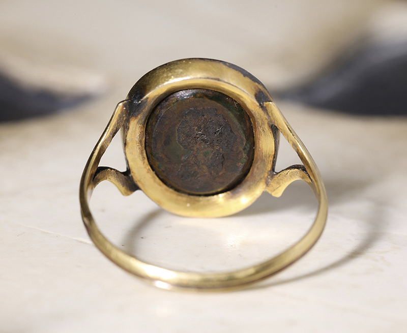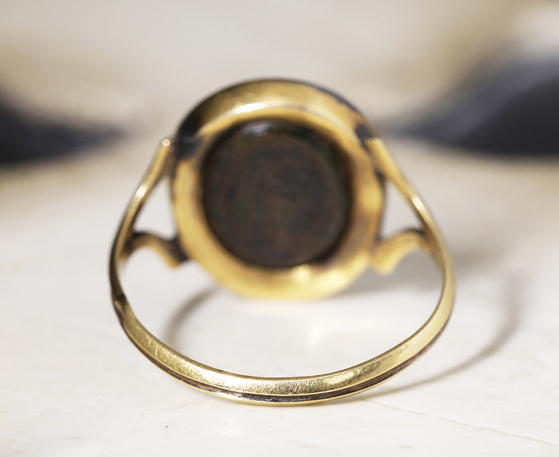 もともとは、このインタリオが古代ローマ時代のブロンズリングにセットされていたことを示しています。