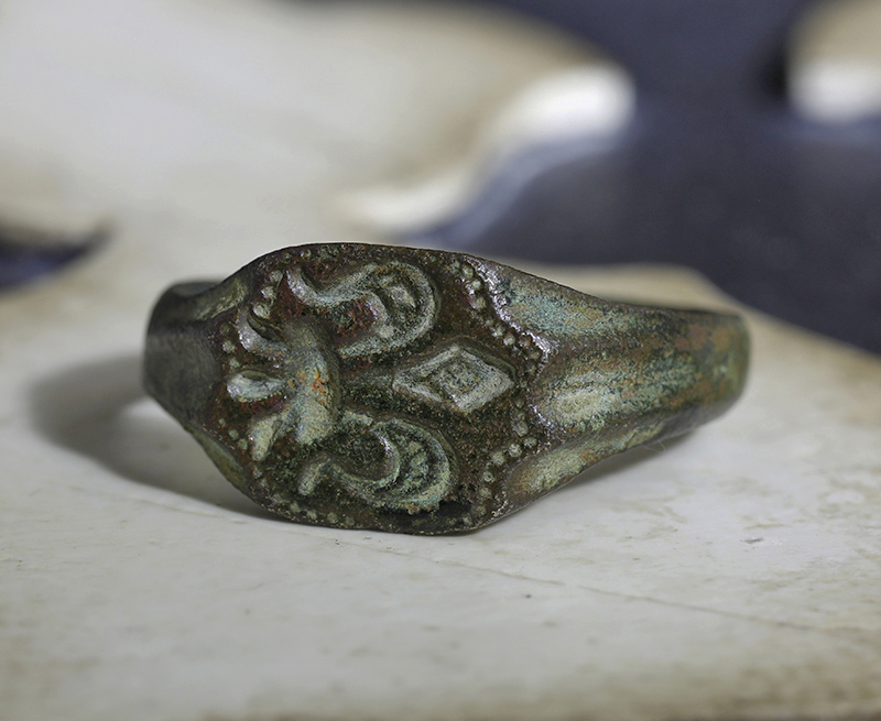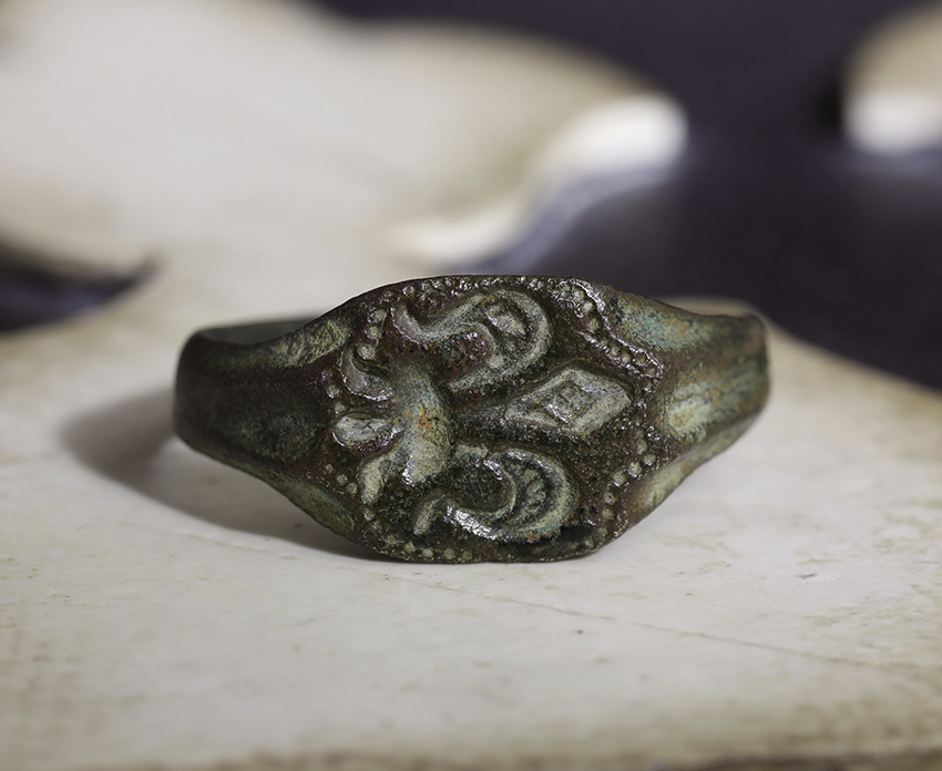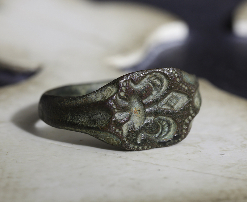 100年戦争の時代に作られた中世のブロンズ製シグネットリングです。