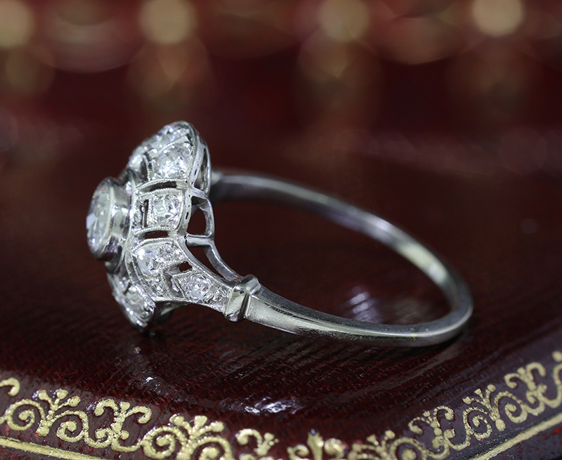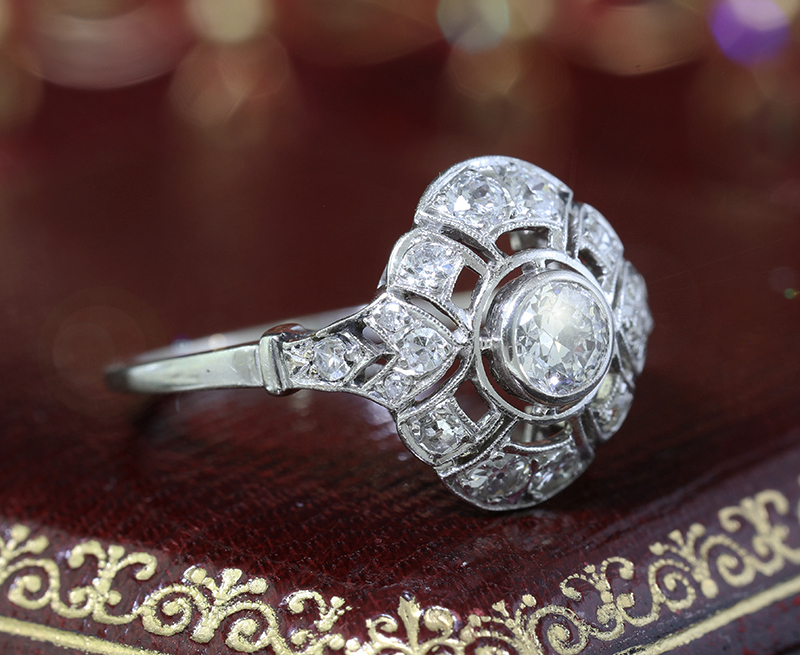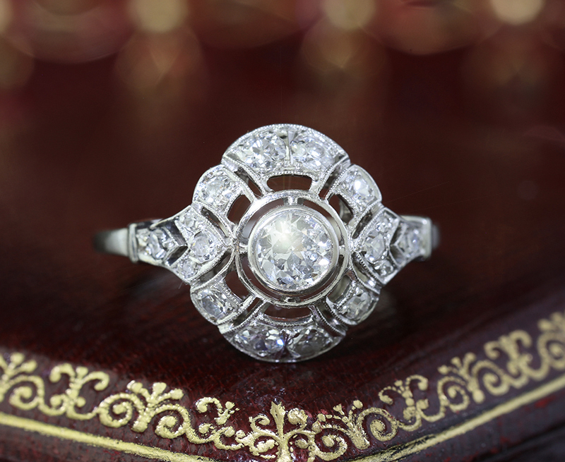 アール・デコらしい端正なデザインのダイヤモンドプラチナリングです。