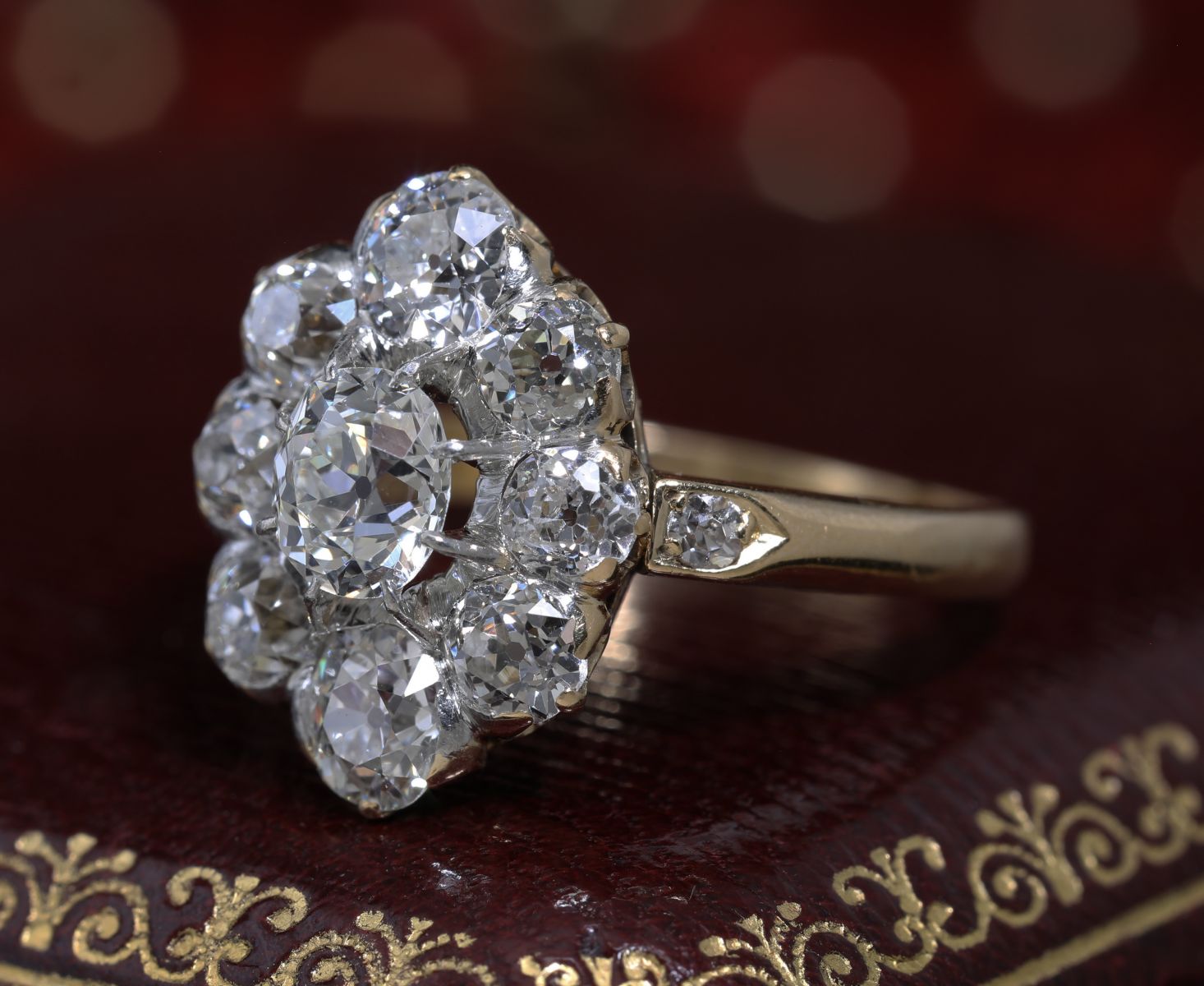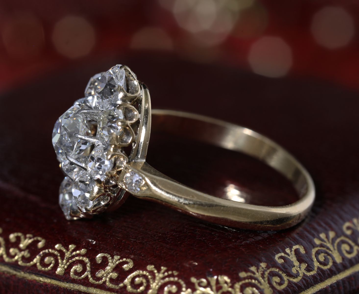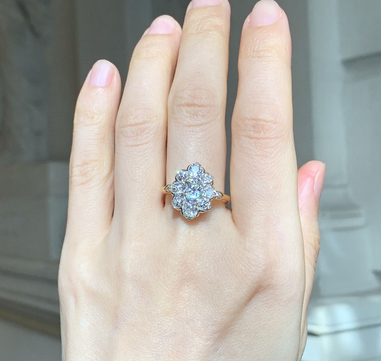 ベル・エポック期のフランスで作られた、ダイヤモンド・クラスターリングです。
