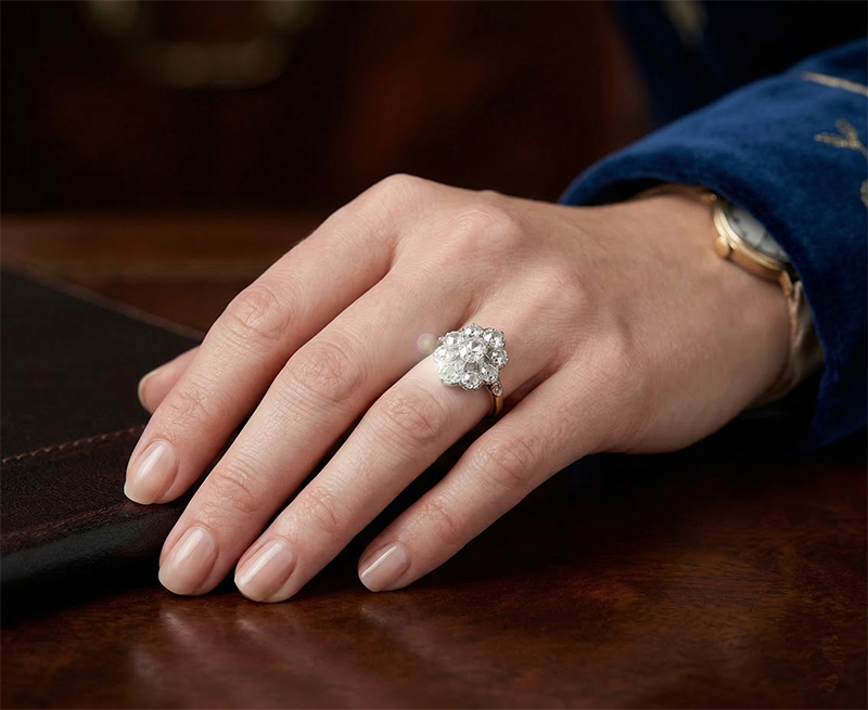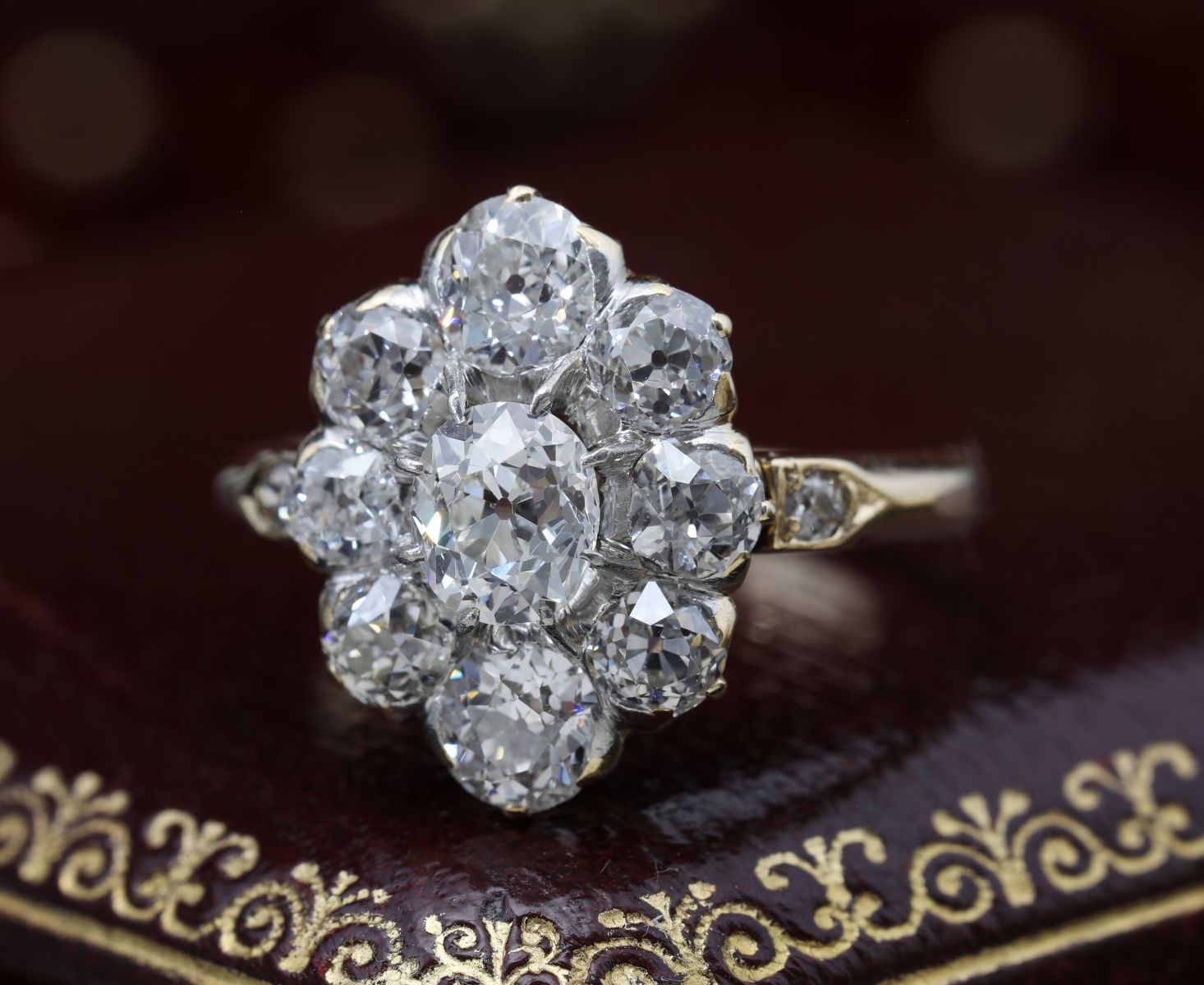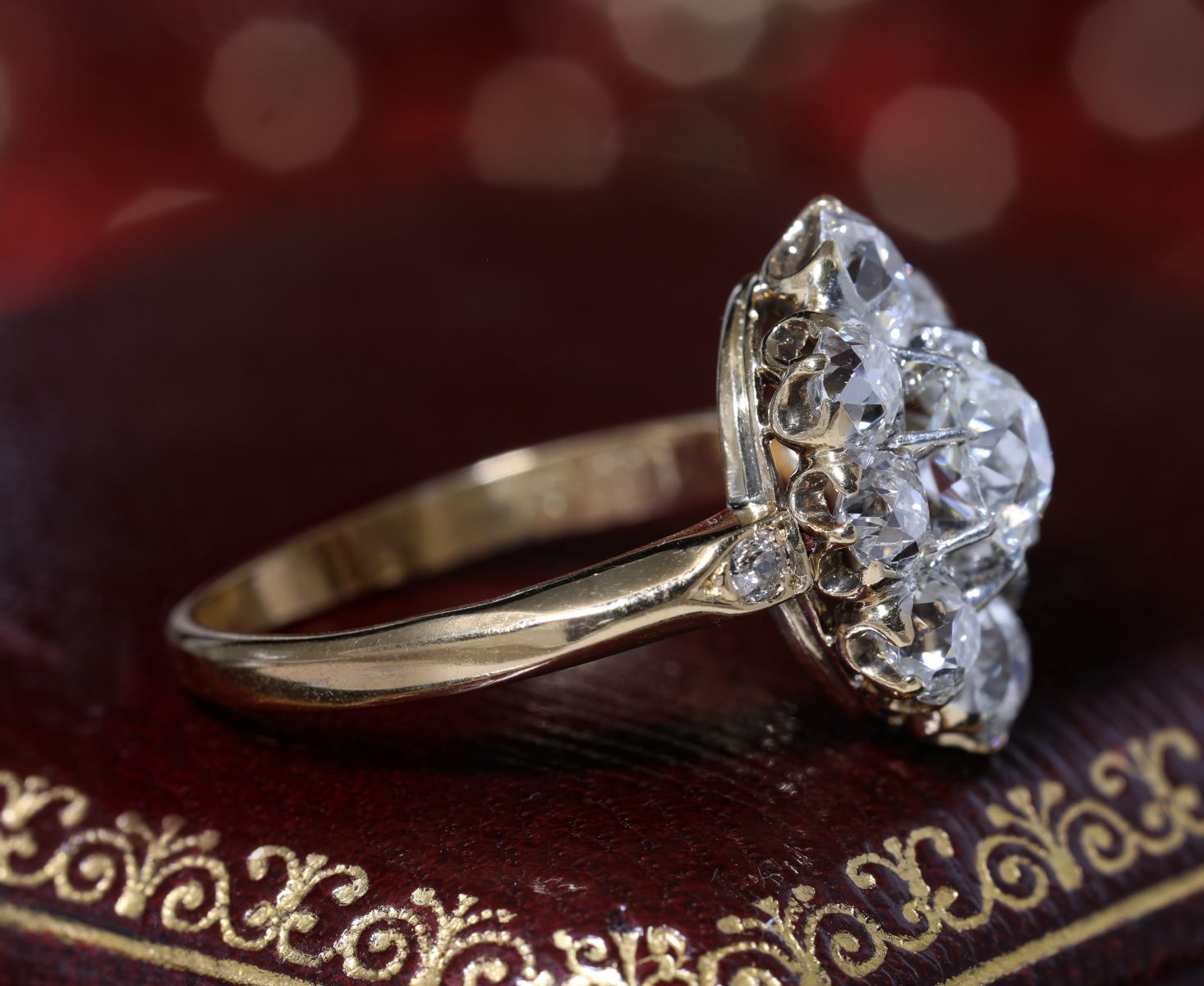 ベル・エポック期のフランスで作られた、ダイヤモンド・クラスターリングです。