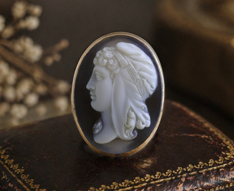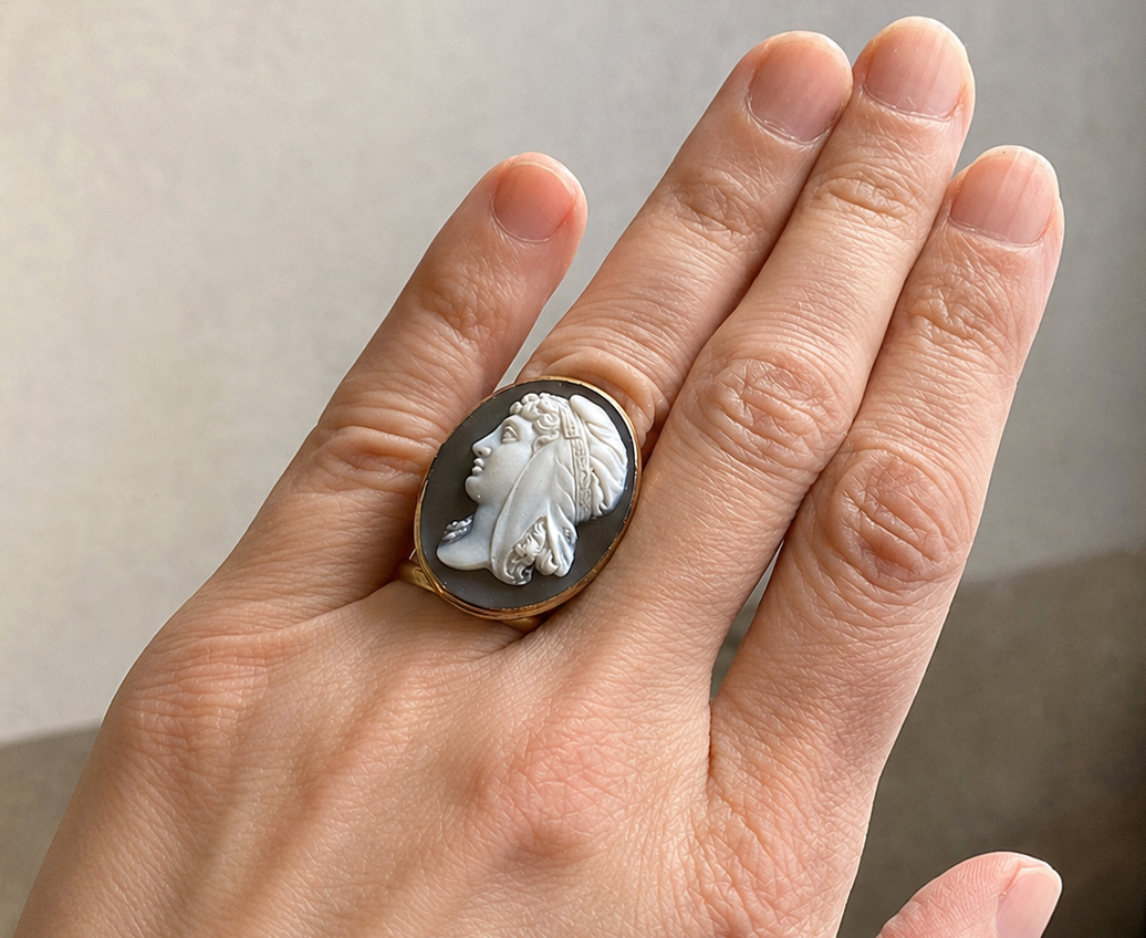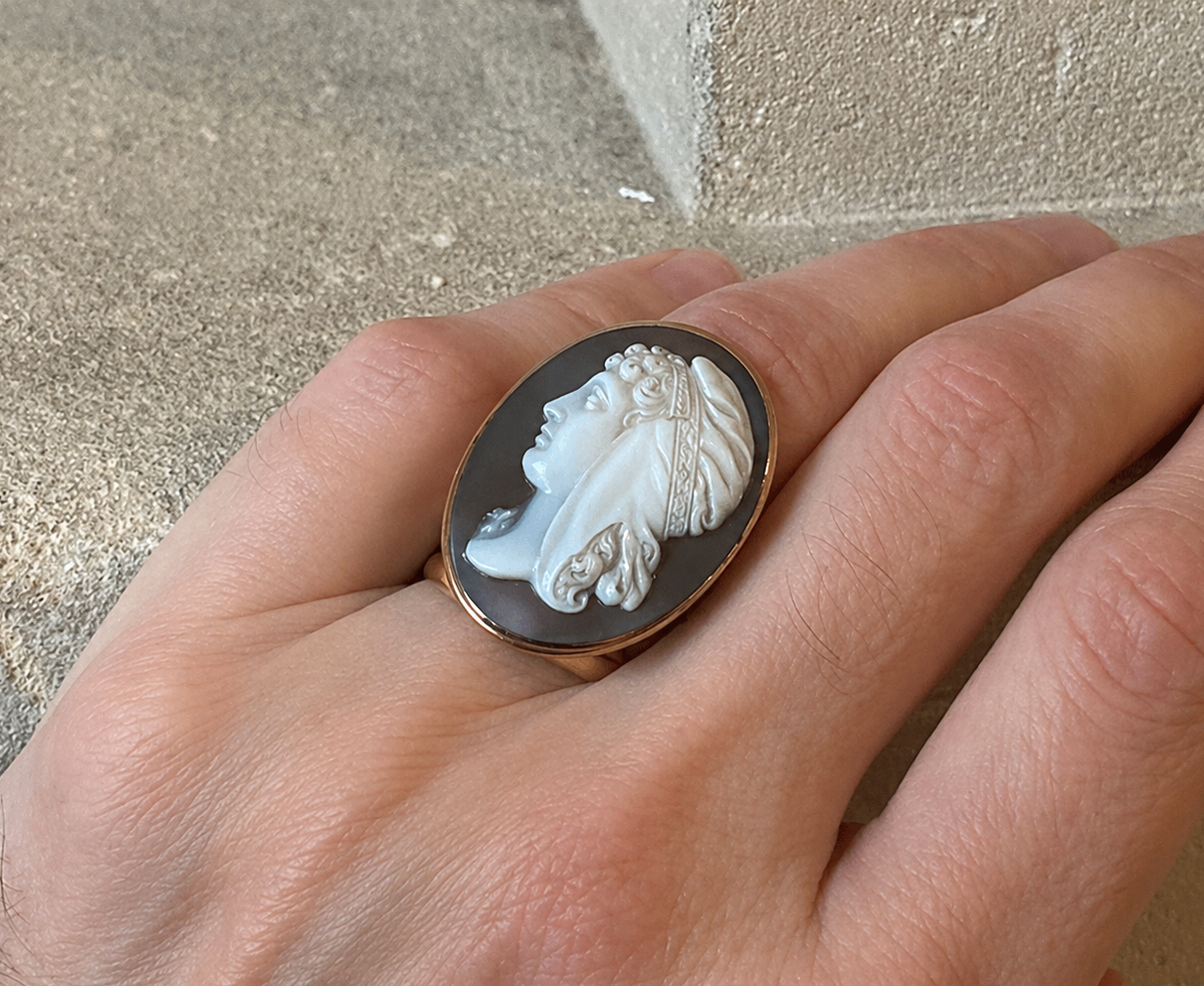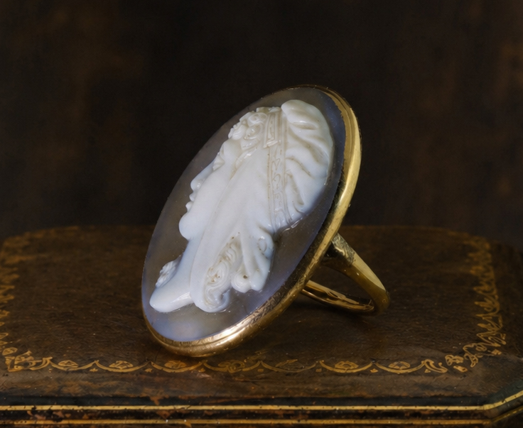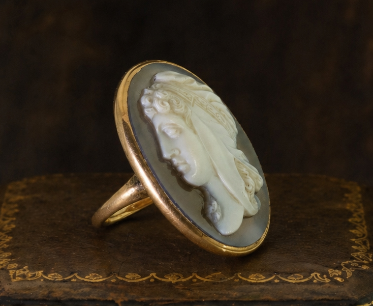 アゲートに彫られた、トロイアの王子パリスのカメオリングです。