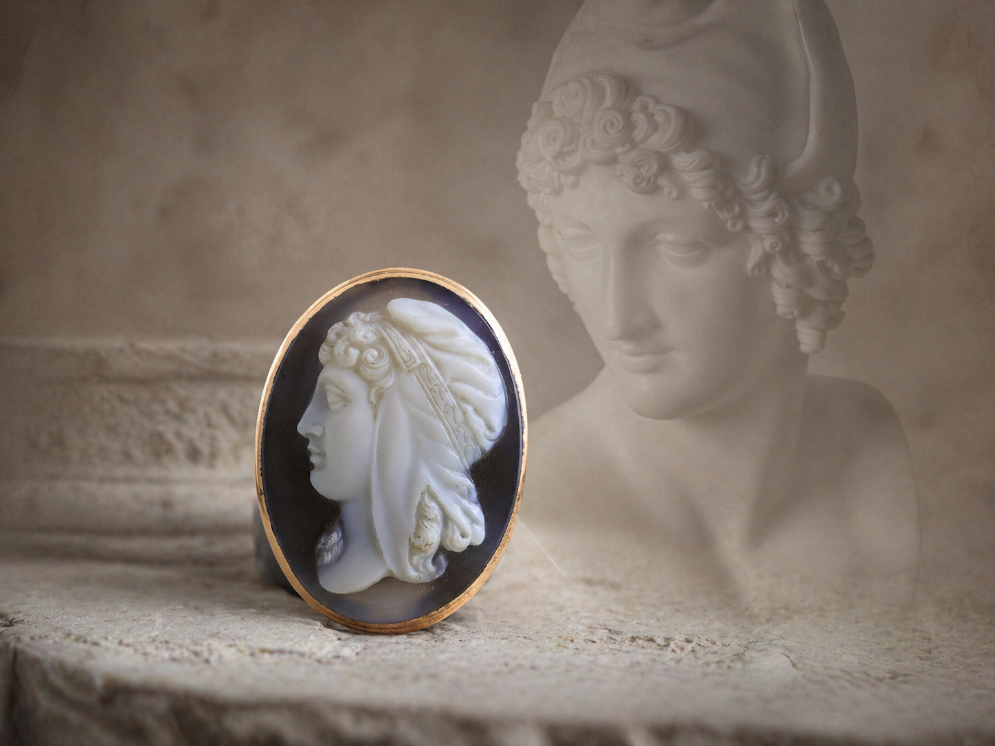 カメオのモチーフとして表されたものは珍しくひときわ印象に残る作品です。